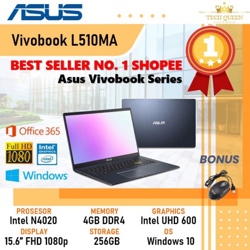 Grosir Laptop Asus Vivobook L510MA N4020 4GB 128ssd W10 1YR 15.6FHD NUMPAD BLIT Slim Bezel garansi ori untuk seluruh Indonesia tzb