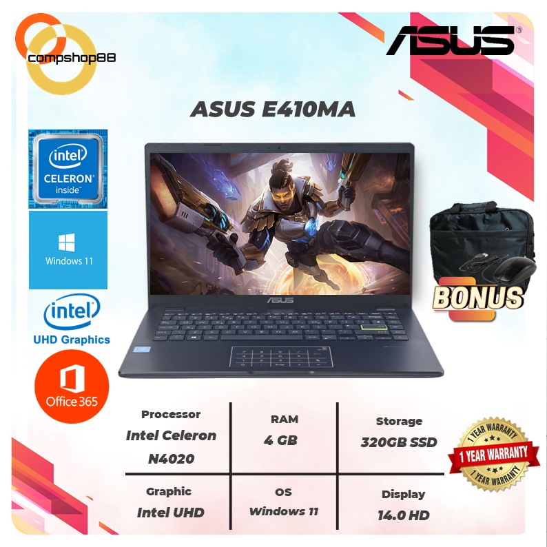 LAPTOP ASUS VIVOBOOK E410MA N4020 4GB 320SSD W11+OFF365 1YR 14.0 HD