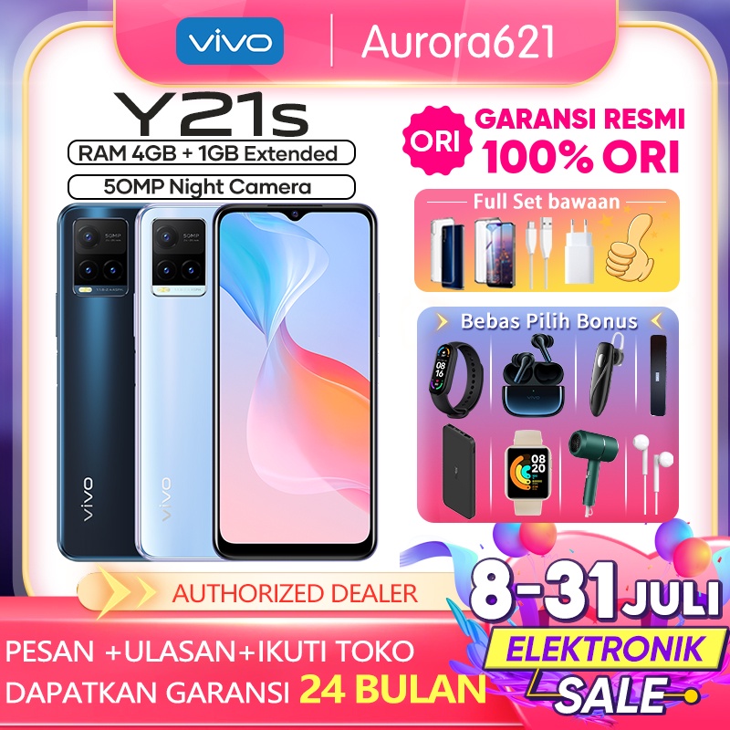 Pusat ditributor online VIVO Y21s 4/128GB RAM 4GB+1GB Extended ROM 128GB Prosesor Helio G80 Gaming Kamera Belakang 50MP+2MP+2MP GARANSI RESMI VIVO Y21T untuk seluruh Indonesia sqy