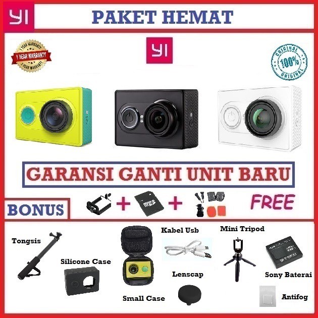 Pusat ( 16 in 1) Paket Hemat Action Camera Xiaomi Yi Baru Bergaransi untuk seluruh Indonesia qgt –